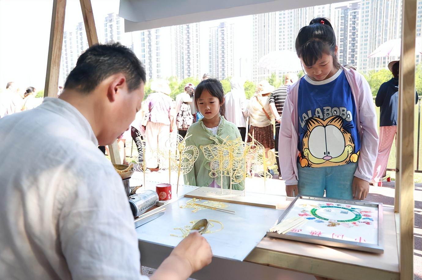 賈魯河上龍舟競渡,岸邊體育市集百花齊放,除了有跳繩、毽球等傳統(tǒng)體育游戲互動外,還有糖畫、投壺等非遺項目展示,以及文旅產(chǎn)品推介,不少市民通過親身參與享受運動的歡樂和傳統(tǒng)文化的魅力。