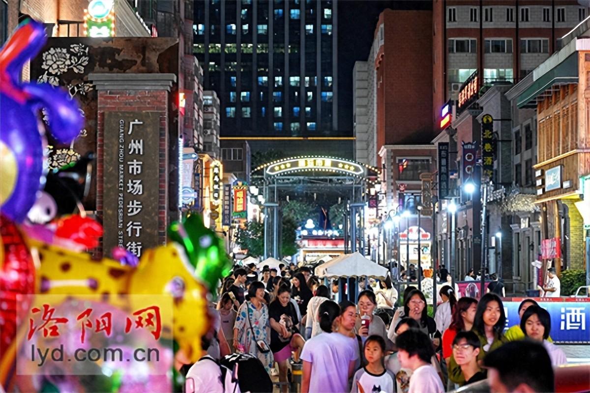 8日晚,洛陽澗西區(qū)廣州市場步行街人流如織