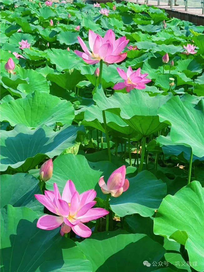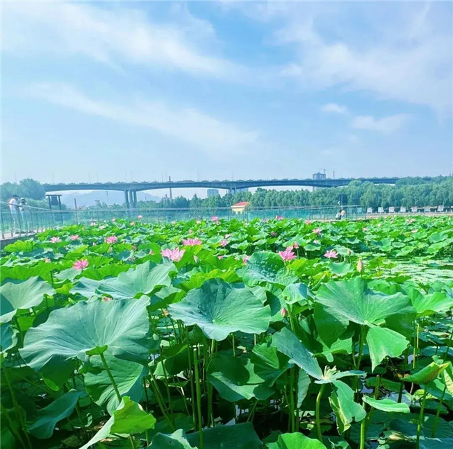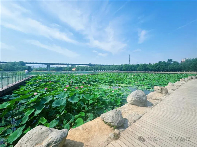 為提升水質,改善水生態(tài),提高河道景觀。近年來,我市園林綠化中心陸續(xù)在石河道中央公園新興大橋、中原大橋下的淺水區(qū)種植了荷花。如今,這些荷花已陸續(xù)綻放,碧綠的荷葉、絢麗的花朵相互映襯,構成了一幅絕美的畫卷,為鞏義的夏日增添了一抹清新與詩意。