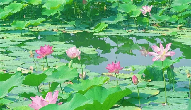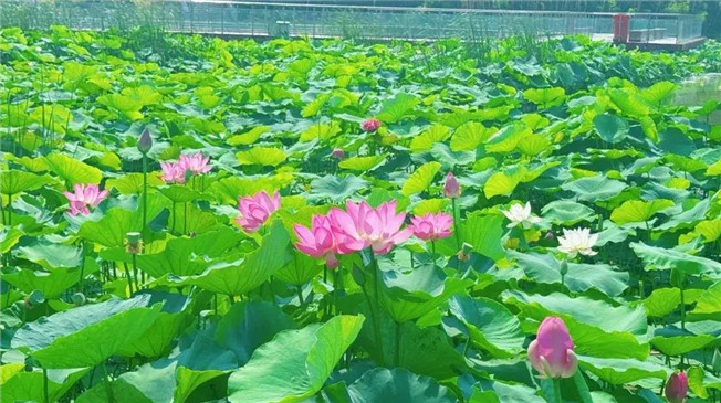鞏義市園林綠化中心石河道管理二所所長孫軍峰:“石河道中央公園的荷花集中種植在新興橋下和中原西路橋下的5號湖、6號湖淺水區(qū),主要種植有披針紅、白牡丹、粉千葉、粉千層等品種,種植了6萬多株,4萬多平方米,花期在6月到9月。目前荷花已經盛放,大家可以來此賞花拍照,但因荷花種植環(huán)境,大家在游玩時,要文明賞花、注意安全。”