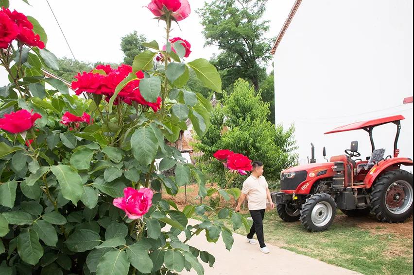 月季村中開,農(nóng)機(jī)停門前。