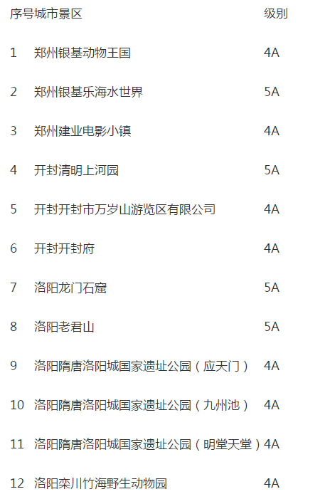 附:“一機游河南”免票活動景區(qū)