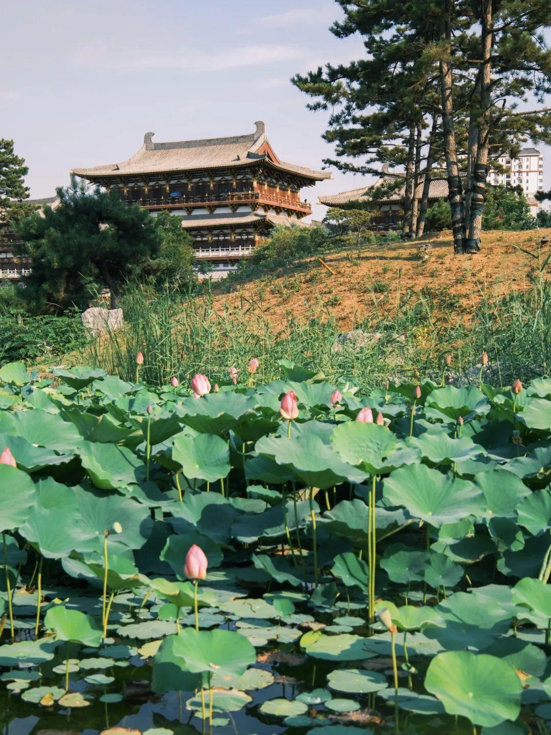 沿著池邊小徑走走,誤入藕花深處,一朵朵欲說還休的粉荷與水榭樓宇相映成趣,綻放著中式美學的無限韻味。夏日的九洲池開啟滿園翠色模式,漫步在這座濃縮的“小自然”里,呼吸著無邊無際的綠色,從心靈到皮膚,染成薄荷。