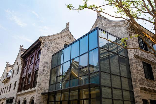 創(chuàng)新方面,項(xiàng)目應(yīng)用了新的設(shè)計(jì)理念、現(xiàn)代的建筑技術(shù)、現(xiàn)代的工藝和材料。比如,建筑材料方面,不僅使用了老磚、青石板,也采用了玻璃磚、玻璃幕墻、金屬等現(xiàn)代材料,采用了黃銅飾面板和目前最前沿的光電玻璃。