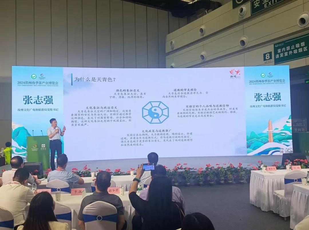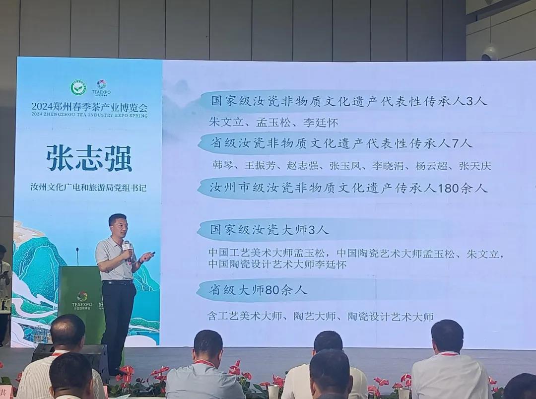 中華老字號——弘寶汝瓷作為陶瓷行業(yè)代表應(yīng)邀參加,汝州市文化廣電和旅游局黨組書記張志強作為唯一的官方推廣大使在開幕式上以“汝州·緣起天青”為題宣講汝瓷文化。