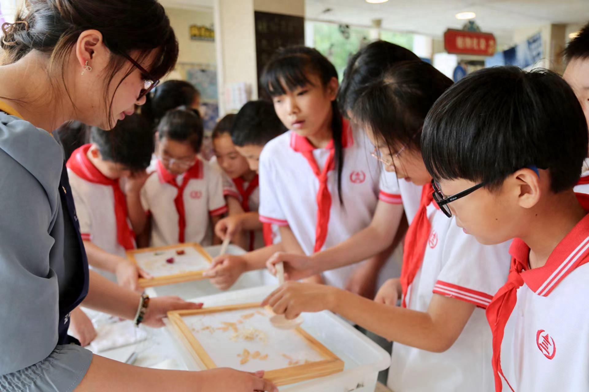 “今天,我們在甲骨文書屋進行閱讀的同時,有了‘意外收獲’!我們認(rèn)識并學(xué)習(xí)了古法造紙、雕版印刷、古籍修復(fù)、植物扎染、木板年畫等多種非遺工藝,感受到了中華優(yōu)秀傳統(tǒng)文化的魅力。”安陽市北門西小學(xué)五年級學(xué)生孟浩森收獲頗豐。