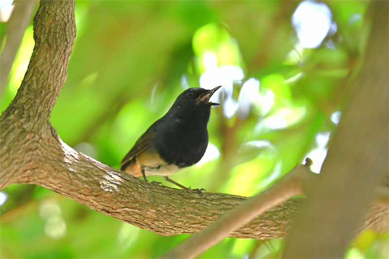 猛禽展翅、鸛掠淺灘、眾鳥覓食……夏日,位于河南省洛陽市欒川縣的伏牛山國家級自然保護(hù)區(qū)龍峪灣迎來了一年一度群禽集結(jié)盛況。2024年6月18日,一對夫婦在龍峪灣拍照時(shí),突然,一道黑影闖入鏡頭,他們來不及多想就連忙摁下快門。原來,這是一只黑喉歌鴝,它的腹部呈黃白色,頭頂、背、兩翼及腰皆為青石藍(lán)色,看起來靈巧可愛。