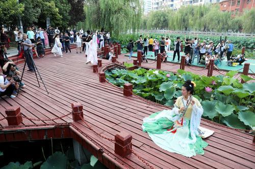 如今,許昌整個(gè)水系種植都有荷花,每到“荷花季”,觀荷、拍荷、畫荷的市民絡(luò)繹不絕。尤其是近年來,泛舟賞荷成了夏季游許昌的必備路線。