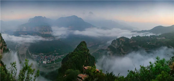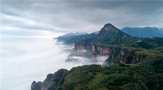 太行大峽谷的云海,時而如風(fēng)平浪靜的湖水,時而像波濤詭異的大海,時而輕輕如絲絹,時而又怒氣沖霄。雪白的云團(tuán)像海浪一樣在空中翻滾著,碰撞著,擁擠著。只是沒有海的蔚藍(lán),沒有海的驚天動地的呼嘯,但它有海的浩瀚,有海的氣勢。