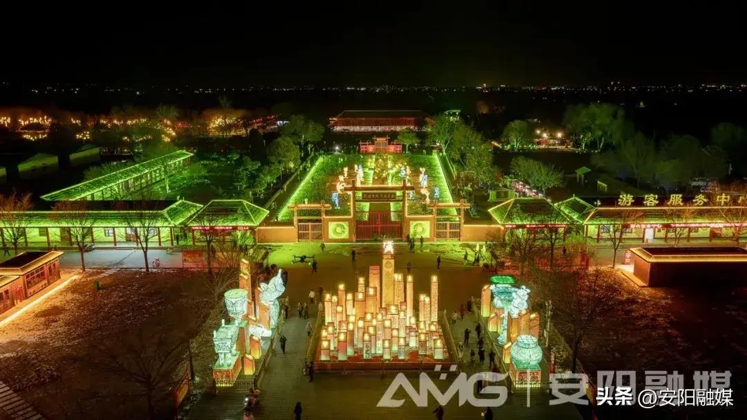為了讓收藏在博物館里的文物“活起來”,春節(jié)期間,殷墟景區(qū)首次在夜間開放,常態(tài)化開啟“點亮殷墟”夜游新模式。在殷商國都里,以“天·心之所極”“地·愿之所往”“人·萬物之靈”“文·甲骨奇文”為主題主線,打起了光、影、燈組合拳,殷墟亮了,殷墟美了,“滿城盡帶黃金甲”,讓整個殷墟越發(fā)顯得古樸厚重而又時尚起來。