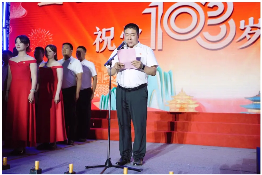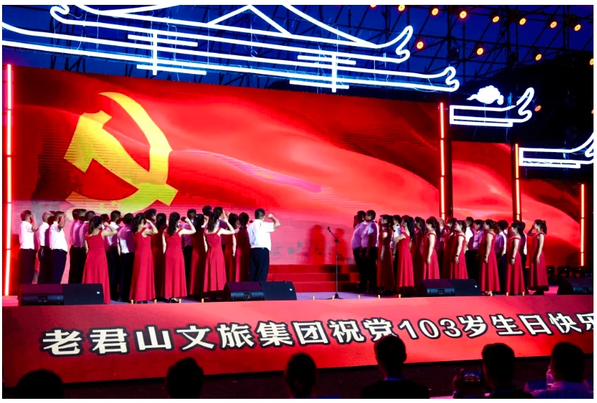 開幕式現場,老君山全體黨員莊嚴宣誓,并與在場游客合唱《沒有共產黨就沒有新中國》,共同慶祝建黨103周年。