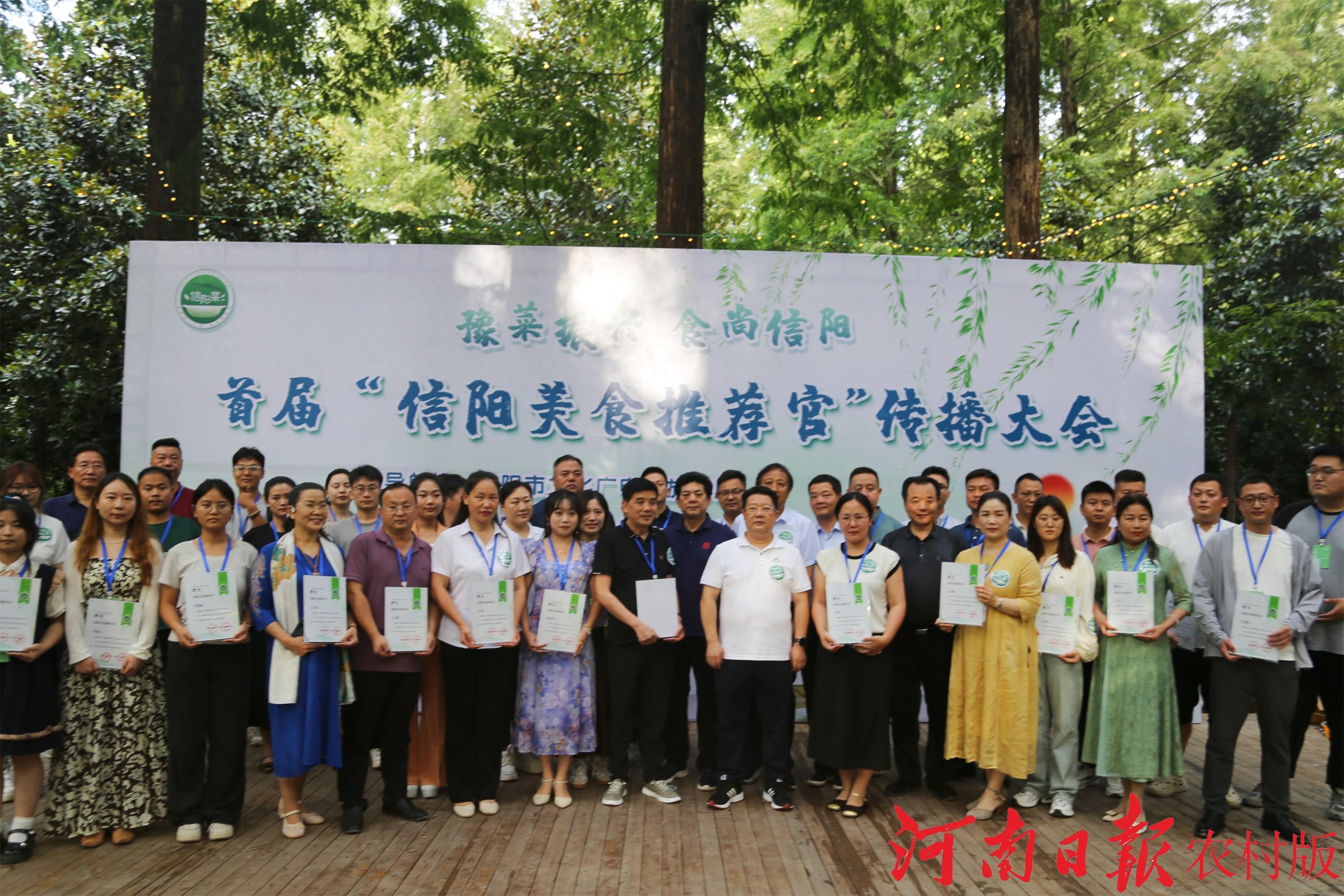 據(jù)了解,開幕式現(xiàn)場有30余名社會各界代表獲評為信陽美食推薦官,他們將走進(jìn)田間地頭,深入挖掘信陽地道美食,運(yùn)用短視頻、直播等新穎、生動、 富有創(chuàng)意的方式,記錄它們的制作工藝,講述它們背后的故事,并傳承與弘揚(yáng)信陽的傳統(tǒng)文化和飲食習(xí)俗,以誠信、高度負(fù)責(zé)的態(tài)度,為消費(fèi)者推薦健康、安全、有品質(zhì)的信陽美食。