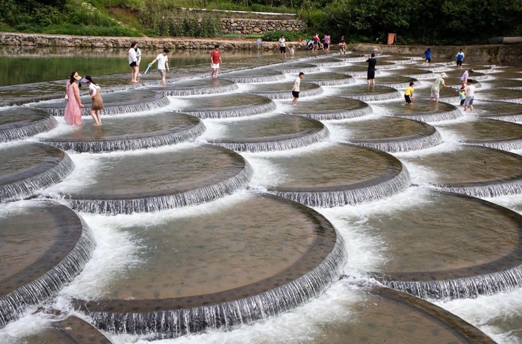 7月2日,擁有中國美麗休閑鄉(xiāng)村、河南唯一全國“零碳標準試點”村等諸多光環(huán)的商城縣伏山鄉(xiāng)里羅城村,雨后乍晴,美若仙境,天藍云白、山清水秀,奇峰飛瀑窗前掛、清溪奔涌繞田園,按捺不住的孩子們,早已撲向千工堰、魚鱗壩、大水車等親水平臺,與夏日清涼擁個滿懷。