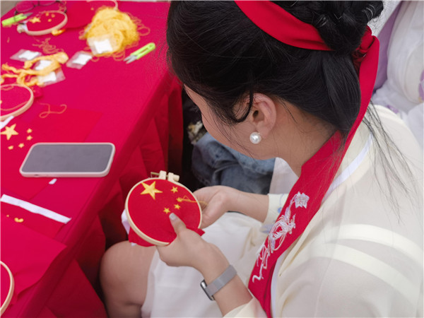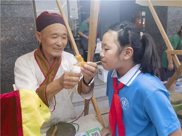 互動(dòng)體驗(yàn)區(qū)更是熱鬧非凡。在汴繡攤位前,市民們紛紛拿起針線,跟隨非遺傳承人學(xué)習(xí)汴繡技藝,一針一線在他們的巧手下變成了精美的藝術(shù)品。孩子們則在“馬大吹”的指導(dǎo)下學(xué)習(xí)吹糖人,小心翼翼地吹氣、塑形,感受著傳統(tǒng)文化的魅力。