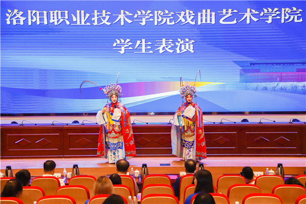 開營儀式上,北美華人華裔尋根協(xié)會(huì)會(huì)長蔡青娜代表北美華人華裔尋根協(xié)會(huì)分別向洛陽市歸國華僑聯(lián)合會(huì)、洛陽老字號(hào)協(xié)會(huì)、洛陽職業(yè)技術(shù)學(xué)院授牌。洛陽市歸國華僑聯(lián)合會(huì)黨組書記、主席華陽向營員代表授旗。洛陽職業(yè)技術(shù)學(xué)院戲曲藝術(shù)學(xué)院學(xué)生表演豫劇經(jīng)典唱段。