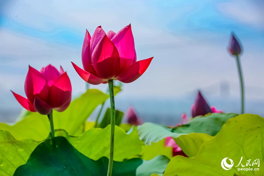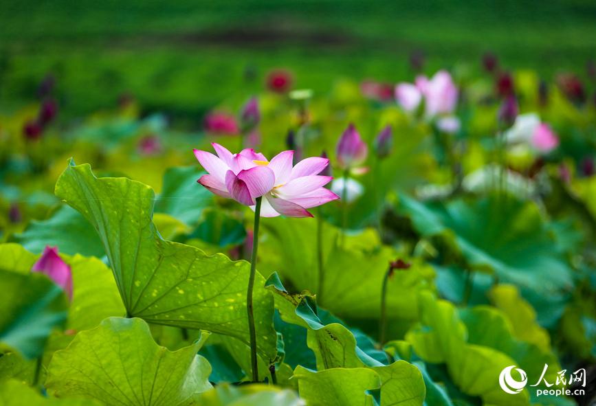 灼灼荷花出水中。人民網(wǎng) 程明輝攝