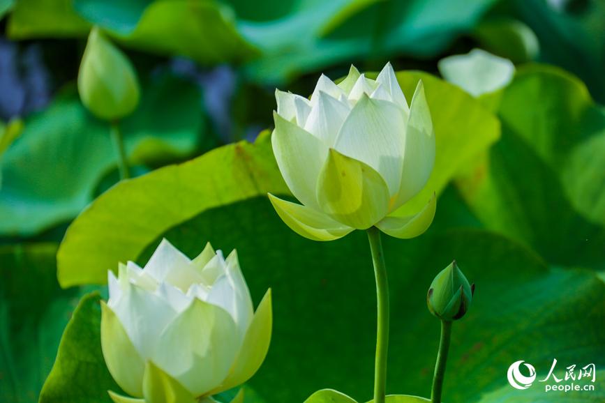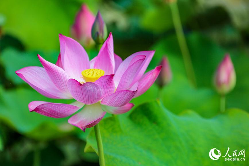 荷花嬌艷動(dòng)人。人民網(wǎng) 程明輝攝