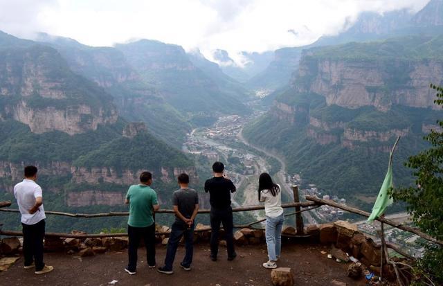 游客在位于太行山深處的林州市石板巖鎮(zhèn)一處觀景平臺游覽。新華社記者 朱祥 攝