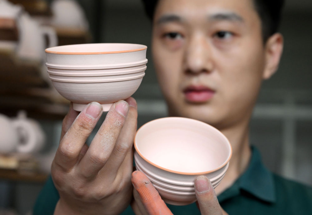 工作人員在禹州市騶虞窯的工作室里檢查鈞瓷素坯質(zhì)量 蘇筱雅 攝
