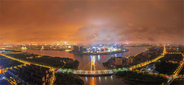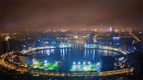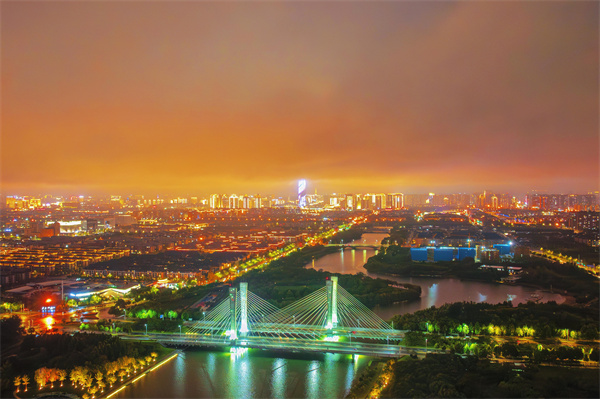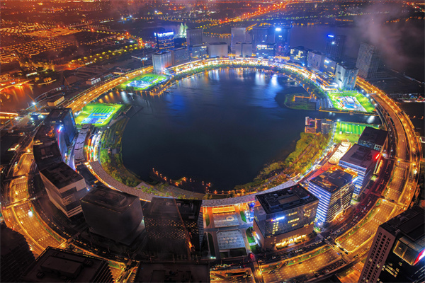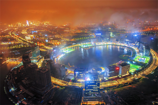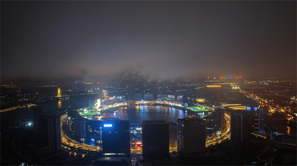 夜幕降臨,位于鄭東新區(qū)的龍湖金融島,在璀璨燈光的映襯下,云霧繚繞、安謐靜美,滿(mǎn)滿(mǎn)的科技感與現(xiàn)代感。