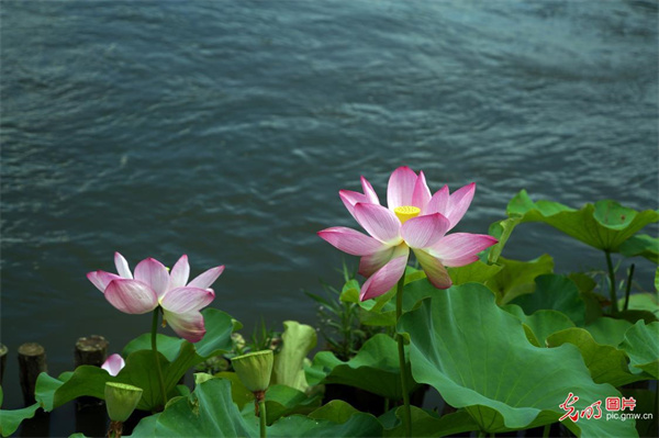 2024年7月7日,云南昆明市大觀樓公園拍攝的荷花。盛夏時節(jié),云南昆明市大觀樓公園的荷花進入最佳觀賞期,多彩的荷花吸引眾多市民和游客前來觀賞。(王祖滿攝/光明圖片)