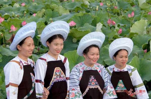 2024年7月8日,貴州省貞豐縣李家屯布衣族鄉(xiāng)村,荷花盛開,美不勝收。(趙玉柱攝/光明圖片)