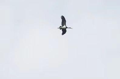 黑鸛是大型涉禽,喙、腿紅色,通體黑色,胸、腹部白色,黑色羽毛具有金屬光澤,體態(tài)優(yōu)美。我國約有黑鸛1000只,被列入國家一級重點保護(hù)野生動物名錄。黑鸛一般以小種群在越冬期現(xiàn)身南陽市的丹江、白河、湍河等濕地,在次年3月份后陸續(xù)離開。此次在夏季監(jiān)測到黑鸛,較為罕見。