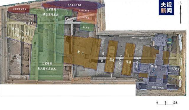 其中,景龍門遺址位于河南省開封市龍亭區(qū),原是北宋東京城內城北墻中部城門。2023年至2024年的發(fā)掘顯示,城門整體結構為一門三道式,由門道、隔墻及兩側墩臺構成,通闊約60米、進深約19.3米。