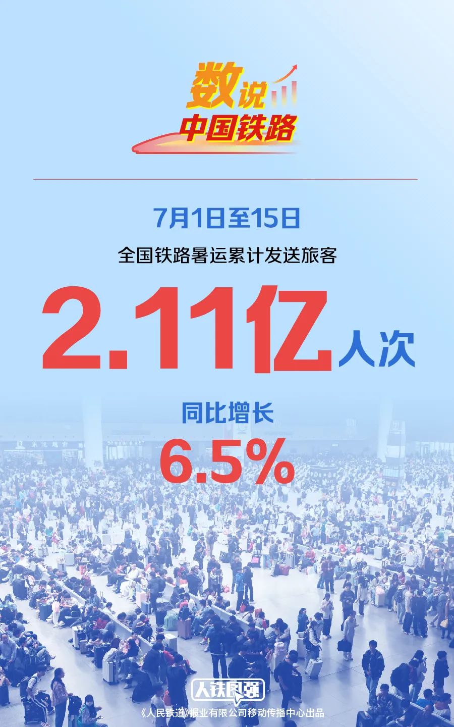 記者16日從中國(guó)國(guó)家鐵路集團(tuán)有限公司獲悉,自暑運(yùn)啟動(dòng)以來(lái),7月1日至15日,全國(guó)鐵路累計(jì)發(fā)送旅客2.11億人次,突破2億人次大關(guān),同比增長(zhǎng)6.5%,日均發(fā)送旅客1403.4萬(wàn)人次。