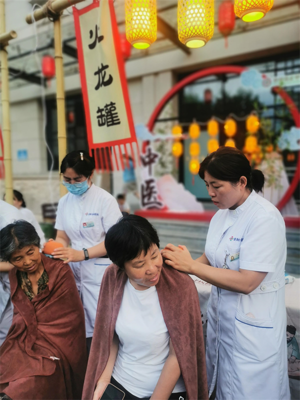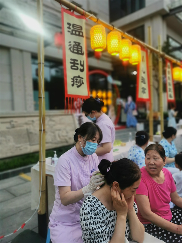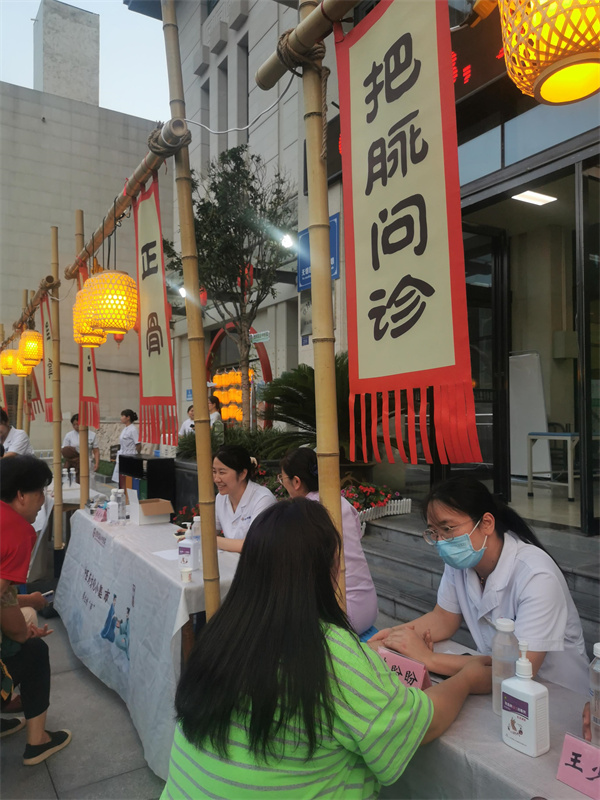活動現(xiàn)場,中醫(yī)義診區(qū),專家為民眾把脈問診,提供健康飲食建議;傳統(tǒng)療法展示區(qū),民眾親身體驗推拿、針灸、刮痧;文創(chuàng)產(chǎn)品展示區(qū),中藥貼畫、中藥香囊、非遺漂扇等琳瑯滿目……