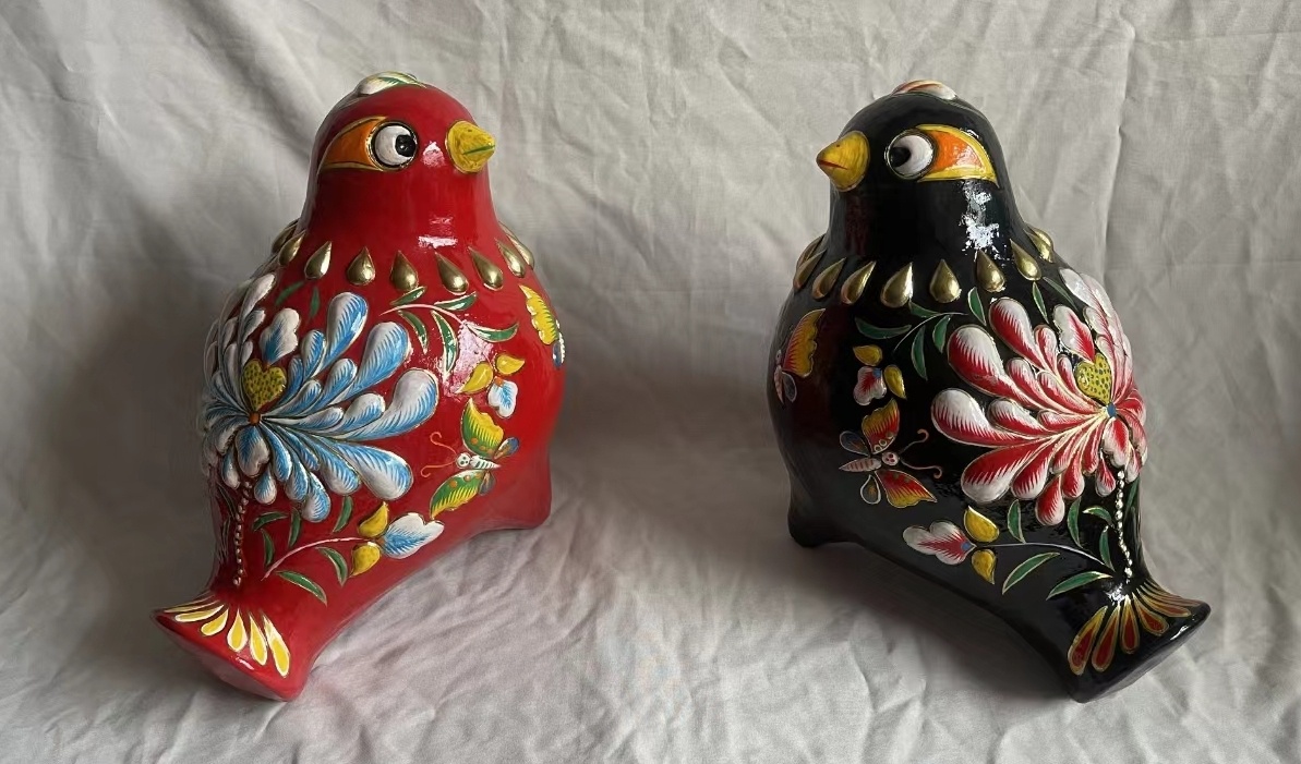 泥咕咕是中原地區(qū)的傳統(tǒng)民俗工藝品,能被吹得“喔喔”作響。它始于遠(yuǎn)古,興于隋唐,享有“泥塑活化石”的美譽(yù)。王紅瑞出生于浚縣西楊玘屯村,該村是泥咕咕的誕生地和集中產(chǎn)地,被稱(chēng)為“中國(guó)泥塑第一村”。王紅瑞自幼受家庭熏陶,隨其祖父王藍(lán)田、父親王學(xué)鋒制作泥咕咕,他的作品秉承傳統(tǒng),在粗獷憨厚中凸顯靈氣,充滿(mǎn)鄉(xiāng)土氣息。