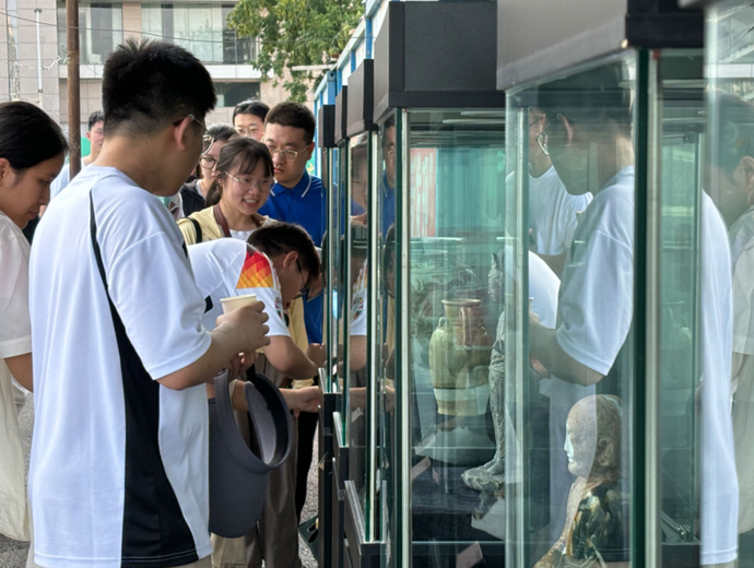 “商代早、中期的喪葬禮制和祭祀文物在這里幾乎都能找到。”鄭州市文物考古研究院項(xiàng)目負(fù)責(zé)人指向展板中的各類文物與遺跡圖片,一一為同學(xué)們介紹。從墓葬形式與禮制規(guī)范,到城墻的夯筑技巧,再到出土的最早酒禮器組合,并以發(fā)掘出土的文物為線索,向同學(xué)們展示了這座高等級貴族墓葬背后的深厚歷史。