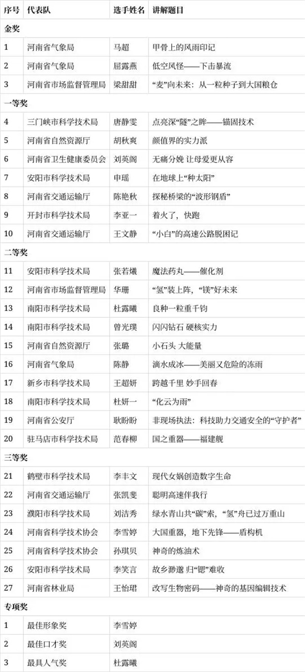 甲骨上的風(fēng)雨印記蘊(yùn)藏著哪些奧秘?被稱作“低空風(fēng)怪”的下?lián)舯┝魇侨绾涡纬傻?從一粒種子到大國(guó)糧倉(cāng),河南如何“麥”向未來(lái)?7月24日,2024年度河南省科普講解大賽決賽在鄭州落幕。來(lái)自省氣象局的馬超、屈露燕和來(lái)自省市場(chǎng)監(jiān)督管理局的梁甜甜分別榮獲金獎(jiǎng)。