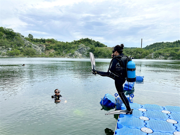 “我們營地總占地面積210畝左右,水面面積45畝,F(xiàn)在營地的主要業(yè)態(tài)是潛水和皮劃艇等運(yùn)動,以及岸畔的草坪露營,后續(xù)將陸續(xù)打造星云咖啡、燒烤啤酒等一系列項(xiàng)目。目前,營地每天的人流量能達(dá)到100至200人次。”星云山谷槳板潛水基地主理人趙曉東介紹,昔日的老國營礦坑已蛻變?yōu)橐煌舯滩ǎ剿Y源豐厚,風(fēng)景獨(dú)特秀麗,既能為戶外愛好者提供潛水培訓(xùn)基地,又能為戶外救援、高校訓(xùn)練課程提供實(shí)訓(xùn)場地,讓游客真正實(shí)現(xiàn)枕星辰而眠、與日月相見。