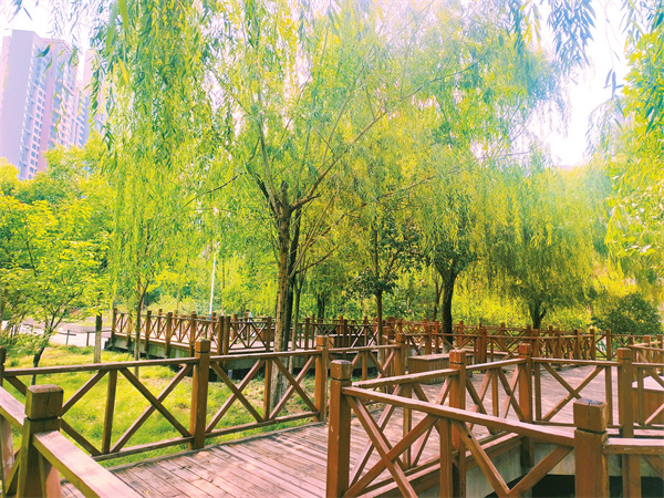 步道旁,濃密的樹影在地面上投下斑駁的光影,微風(fēng)輕拂,仿佛將酷暑一掃而空。無論是與家人共度悠閑的周末,還是與朋友暢聊放松身心,這里都是您避暑游玩的絕佳選擇。