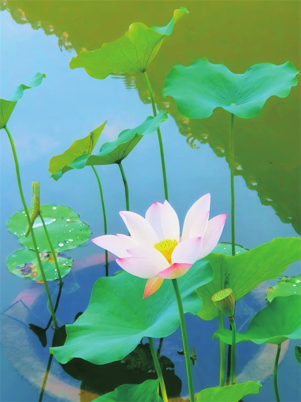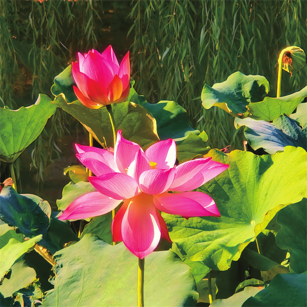 公園內(nèi),湖畔荷花競相綻放,粉紅色的花瓣在陽光下熠熠生輝,為炎熱的夏日增添了一抹清新的色彩。微風(fēng)拂過湖面,荷花輕輕搖曳,散發(fā)出淡淡的芳香,與周圍郁郁蔥蔥的步道交織成一幅生動的夏日畫卷。