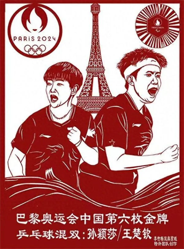 在巴黎奧運(yùn)會(huì)上,中國(guó)隊(duì)組合王楚欽、孫穎莎奪得乒乓球混合雙打金牌。來(lái)自三門(mén)峽市的豫西剪紙代表李竹梅及團(tuán)隊(duì),用豫西剪紙藝術(shù)持續(xù)記錄中國(guó)運(yùn)動(dòng)員奪冠精彩瞬間。李竹梅作為豫西剪紙的杰出代表參加了巴黎奧運(yùn)的文化交流活動(dòng)。