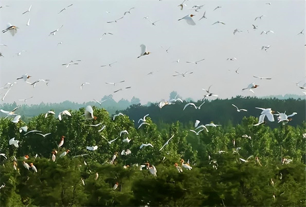白鷺園位于固始縣胡族鋪鎮(zhèn)楊店林場(chǎng),因3萬多只國(guó)家二級(jí)保護(hù)動(dòng)物——白鷺棲息于此而得名,為市級(jí)自然保護(hù)區(qū)。在這片森林覆蓋率達(dá)93%的“天然氧吧”,棲息、繁殖著128種鳥類,13種獸類,19種兩棲爬行類動(dòng)物,是我國(guó)淮河以南內(nèi)陸平原上罕見的水禽地。