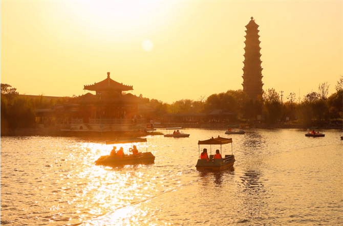 在開封鐵塔,領(lǐng)略“天下第一塔”的藝術(shù)魅力;在山陜甘會館,欣賞讓人嘆為觀止的雕刻藝術(shù);在大宋御河,乘船泛舟,感受北方水城的韻味;在西司夜市、鼓樓夜市、小宋城品味開封美食。