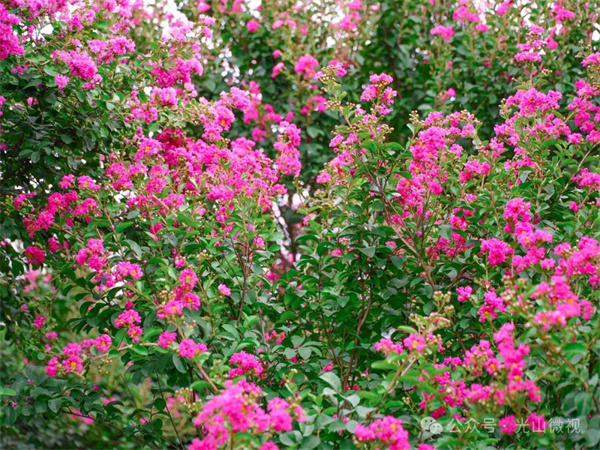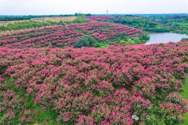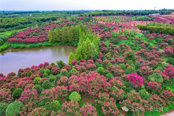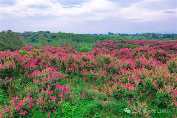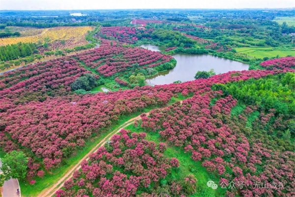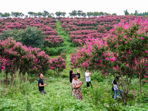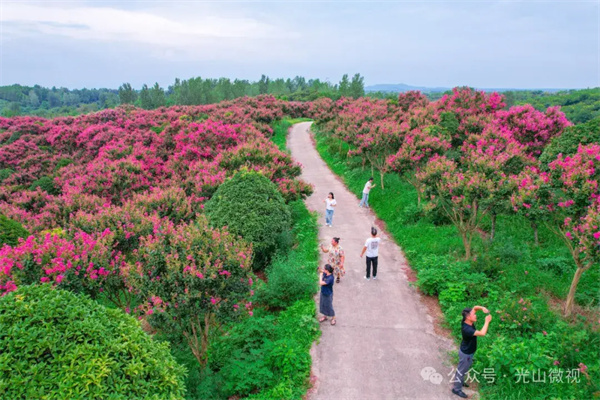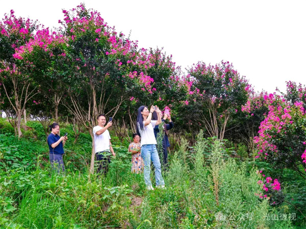 眼下,位于光山縣槐店鄉(xiāng)司馬光油茶園內(nèi)的千畝紫薇園花開盛放,姹紫嫣紅。一團(tuán)團(tuán)、一簇簇,層層疊疊的紫薇花,擠滿枝頭,在驕陽下盡顯美麗身姿,成為夏日里一道亮麗的風(fēng)景。