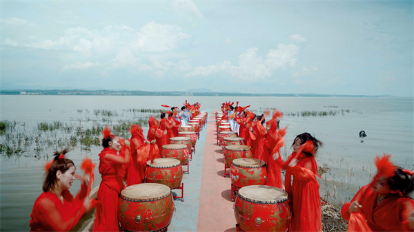 為進(jìn)一步豐富游客的體驗(yàn),8月4日當(dāng)天,“鼓·漾陸渾”活動(dòng)也在陸渾湖畔舉行。來(lái)自嵩縣城關(guān)鎮(zhèn)、田湖鎮(zhèn)的三支鼓舞隊(duì),在迷霧森林、愛(ài)情島和牛寨小洱海等景點(diǎn)進(jìn)行精彩的表演。
