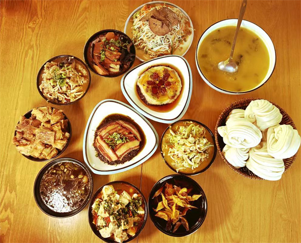 尋一處靜謐的小院或臨街的餐館,享受一頓地道的欒川午餐,是對(duì)味蕾與心靈的雙重盛宴。欒川豆腐宴選用非遺手工豆腐為主材,搭配各種時(shí)令蔬菜與調(diào)料,烹制出豆?jié){、豆花、豆腐、豆皮、豆飯等美味佳肴;欒川八大碗集中扒、燜、醬、燒、燉、炒、蒸、煮等烹飪手法,制出的紅燒肉、小酥肉、梅菜扣肉、燜子、黃米八寶飯等菜式,色、香、味俱佳。走進(jìn)農(nóng)家,燉土雞、烙土豆、糍油膜、大燴菜、炒山菌都是必點(diǎn)美味,唇齒留香、讓人難忘。