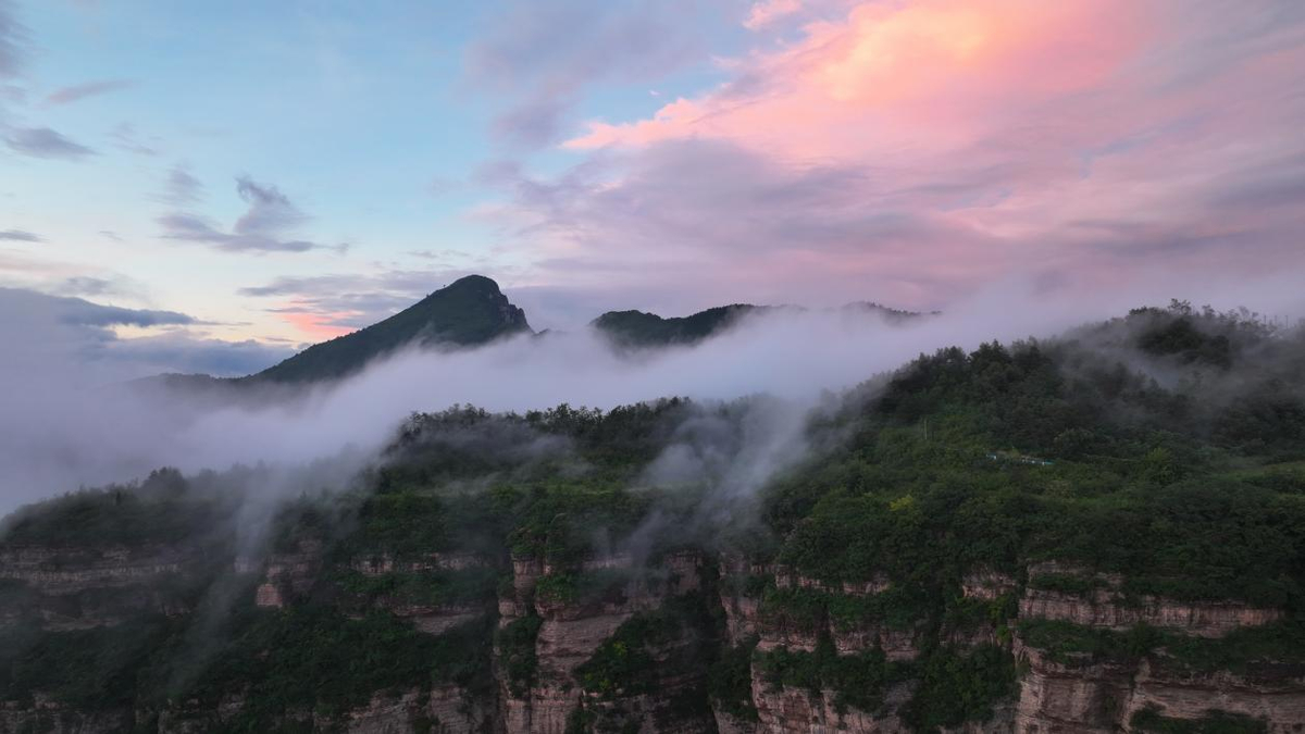 太行大峽谷云海晚霞 演繹天空的絕美浪漫晚霞、 云海 、青山繪就壯美太行畫卷。王敬東攝