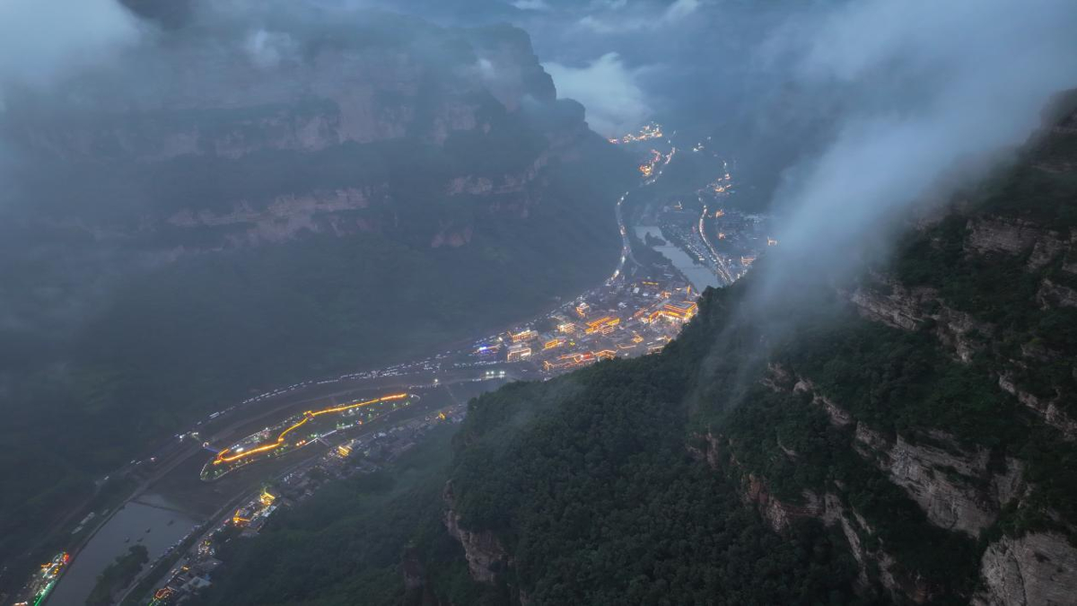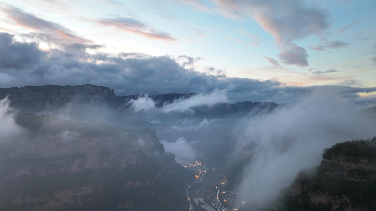 太行大峽谷云海晚霞 演繹天空的絕美浪漫太行大峽谷生態(tài)宜居 萬(wàn)家燈火 王敬東攝