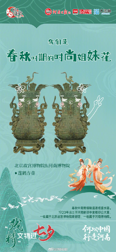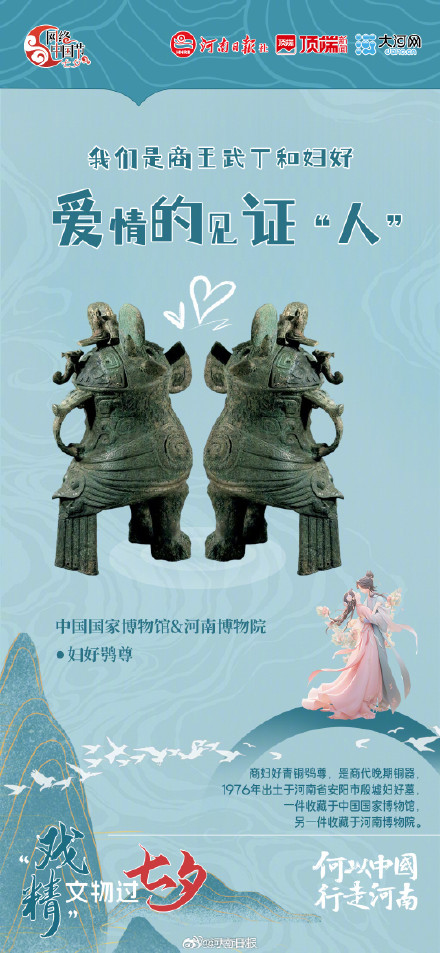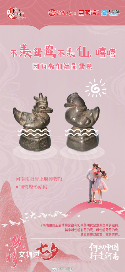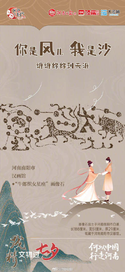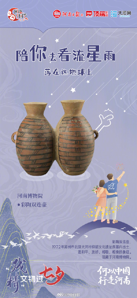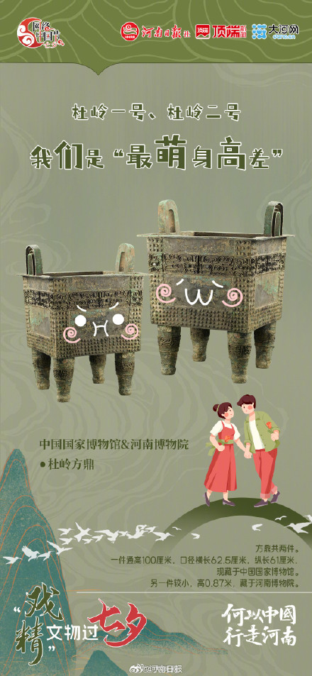 從杜嶺方鼎看“最萌身高差”,在牛郎織女畫像石上讀情意綿綿,透過彩陶雙連壺感受相敬相親……七夕,是中國民間傳統(tǒng)節(jié)日。最初源于古代的星紀(jì)崇拜,后又衍生出牛郎織女相會的愛情故事,是少女祭祀星神、祈求心靈手巧的浪漫之夜。在這個特別的日子里,讓我們一起看一看,那些來自河南的“戲精”文物是如何歡度七夕佳節(jié)的。