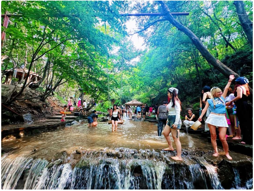 大地炙烤,酷暑難耐,位于伏牛山脈東麓的方城縣七峰山生態(tài)旅游區(qū)打出了“夏季23℃”的清涼標(biāo)語。進入景區(qū),沿著溪流步道拾級而上,不久便可抵達長約2公里的“七峰峽”戲水峽谷,該峽谷處于幽林深處,一旁的瀑布如絹絲般飄落,清涼溪水潺潺作響,成功吸引了大批游客避暑打卡。
