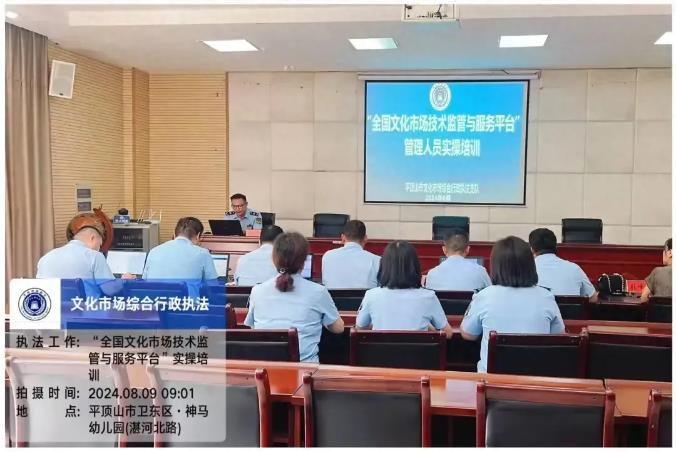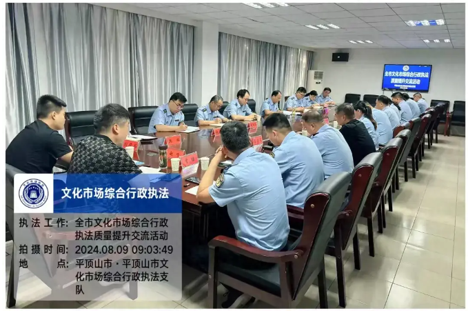 為深入貫徹落實(shí)省、市文化市場(chǎng)綜合行政執(zhí)法工作相關(guān)會(huì)議精神及關(guān)于提升行政執(zhí)法質(zhì)量三年行動(dòng)等工作部署要求。8月9日上午,平頂山市舉辦全市文化市場(chǎng)綜合行政執(zhí)法質(zhì)量提升交流活動(dòng)。各縣(市、區(qū))文化市場(chǎng)綜合行政執(zhí)法機(jī)構(gòu)負(fù)責(zé)人、法制審核人員、“全國(guó)文化市場(chǎng)技術(shù)監(jiān)管與服務(wù)平臺(tái)”管理人員,市文化市場(chǎng)綜合行政執(zhí)法支隊(duì)科室負(fù)責(zé)人等共計(jì)30余人參加。