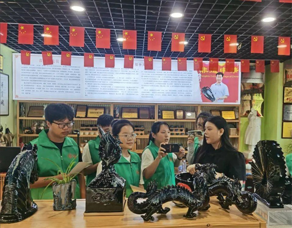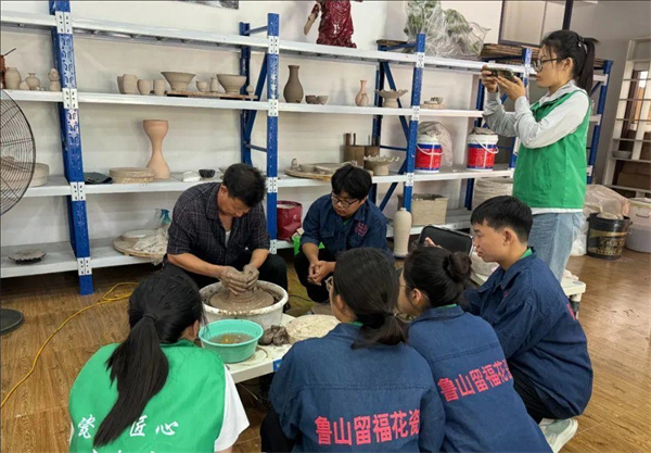 當日,十余名河南大學國際商學院學生來到袁留福的魯山花瓷藝術館和“創(chuàng)藝坊”,開展2024年暑期“三下鄉(xiāng)”社會實踐活動;顒又,大學生們認真了解魯山花瓷的歷史淵源、工藝流程、藝術特色,跟著陶瓷大師一步步體驗魯山花瓷的制作過程,對魯山花瓷這一國家級非物質文化遺產(chǎn)的藝術魅力有了直觀、清晰的認知。
