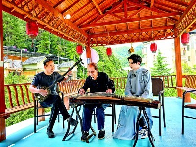 游客在東坪村進(jìn)行樂器表演 圖片來源:光明日報