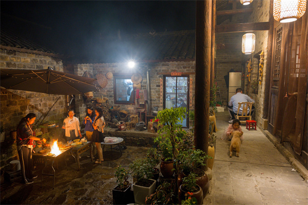 游客在楓楊樹下民宿自助燒烤 蔣侖 攝